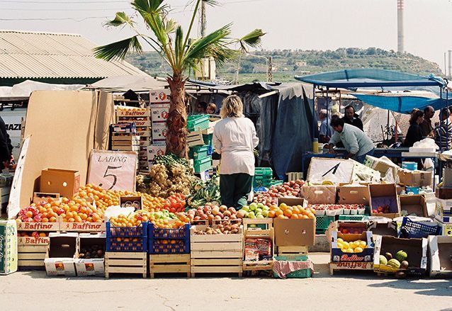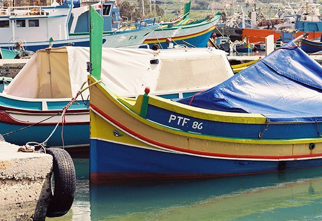 Het is zondag en dan is er altijd markt in Marsaxlokk: de grootste van Malta. In de haven liggen de bont beschilderde vissersbootjes, de luzzu. Iedere visser schildert een oog op zijn bootje. Dat is om het kwade te weren. De naam van het dorp komt van marsa, dat haven of baai betekent in het Arabisch, en xlokk, wat het Maltees is voor de droge siroccowind die er vanuit de Sahara waait. We lopen even over de markt om te snuffelen. Tussen de groente en fruit ontdekken we wel heel verse vis! Na een uurtje houden we het hier voor gezien en rijden verder naar het zuiden.