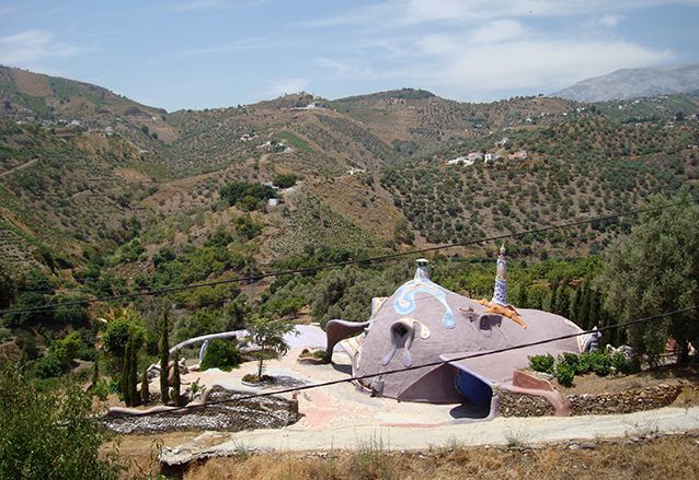 We lopen langs een van de meest gefotografeerde huizen van Archez, geïnspireerd door Gaudi, en zien Canillas alweer opduiken. Onderin het dorp vragen we hoe laat de bus rijdt en waar vandaan. De dame kijkt bedenkelijk en zegt dat er nog één bus rijdt die dag. Hij vertrekt over een kwartier vanaf het centrale plein, bovenin het dorp.