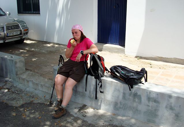 Na een sanitaire stop twijfelen we of we de wandeling af gaan maken. Er staat ons nog een pittige beklimming van ruim 200 meter naar Cómpeta te wachten en eigenlijk hebben we allebei totaal geen puf meer. De hitte speelt ons parten, de felle zon is niet lekker meer.
