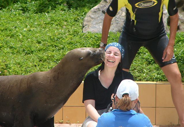 Ook zijn we nog een dagje naar het Seaquarium geweest, een Dolfinarium in het klein. Je kunt hier de bewoners van de zee rond Curaçao bewonderen en voeren. Ook zijn er voedershows en shows met dolfijnen en 1 zeeleeuw – ja, echt waar, er was er maar één. Maar hij kon wel lekker zoenen! Al hou ik niet zo van mannen met snor…….