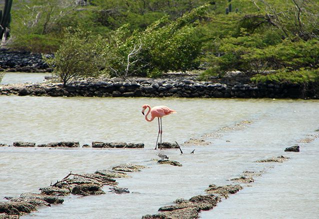 Na een lekker koel drankje reden we terug richting Willemstad. We kwamen nog langs de Santa Martabaai en gingen toen verder naar de zoutpannen bij Jan Kok, waar een flamingokolonie zit.