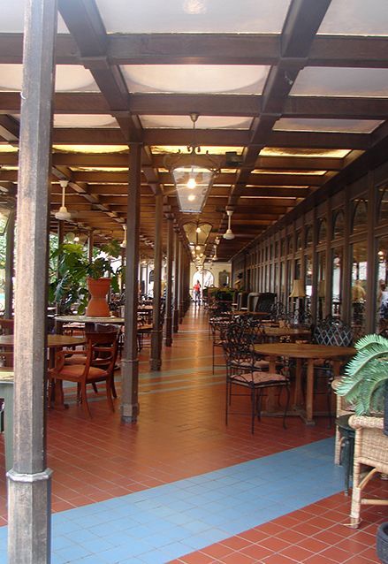 Aan de buitenkant ziet het hotel er niet uit en kan een goede opknapbeurt gebruiken. De lounge en het restaurant zijn super en helemaal in koloniale sfeer. Je kunt er ook lekker buiten zitten eten.