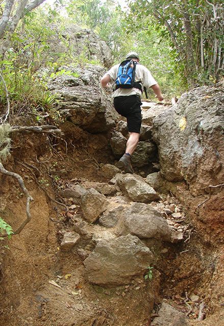 Vol goede moed gingen we op weg. Een kaart heb je hier niet nodig: er gaat maar één pad naar boven. De top ziet er trouwens erg indrukwekkend uit….