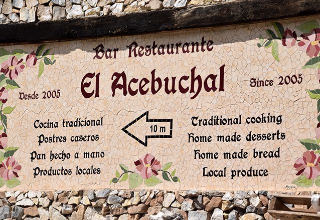 Bij restaurant El Acebuchal kun je geen kleine lunchgerechten (zoals een broodje) krijgen, alleen warme maaltijden. De prijzen van de gerechten zijn erg hoog vergeleken met andere restaurants maar het eten moet erg lekker zijn, vooral het zelfgebakken brood. Daarnaast zit het kleine restaurant vaak vol. Wil je alleen wat drinken, loop dan het dorpje in op zoek naar de B&B.