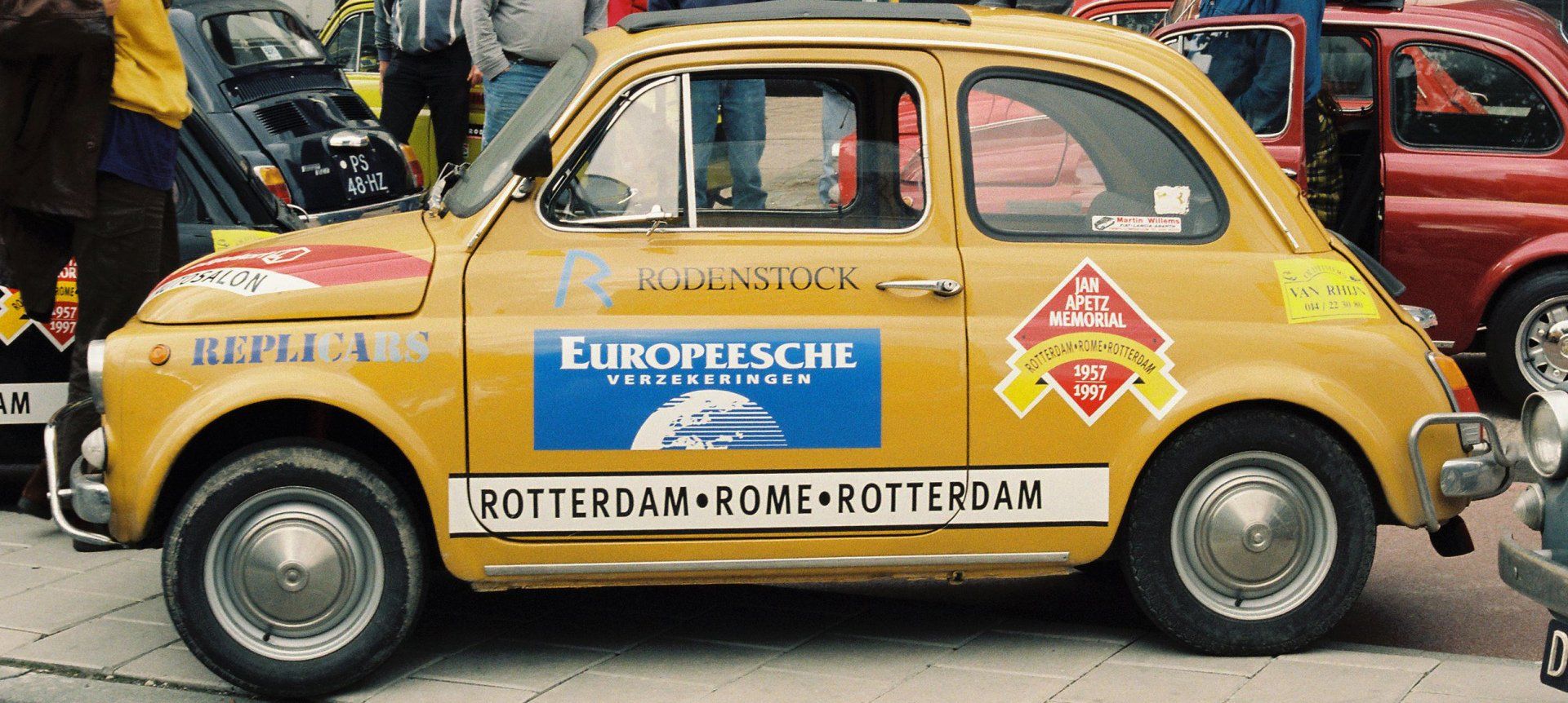 Een hoogtepunt was een weekendje Rotterdam in 1997. De Bijenkorf had toen eens per jaar de ‘Autosalon’, met speciaal voor de Bijenkorf uitgebrachte modelauto’s. Ik had vaag ‘ns iets gelezen over 3 nieuwe gelimiteerde Fiatjes, van de Jan Apetz Memorial – een rit van Rotterdam naar Rome en weer terug naar Rotterdam. Omdat er bij ons in de buurt geen Bijenkorf was, besloten we om naar Rotterdam te gaan om de autootjes te gaan kopen. Een leuke reden voor een weekendje weg, toch?