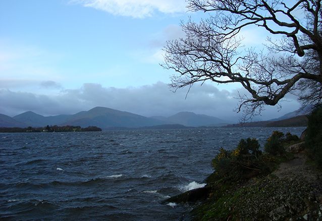 Gelukkig is het droog als we bij Loch Lomond aankomen. Dit meer is het grootste van Schotland qua oppervlakte en het op een na grootste in watervolume, na Loch Ness.