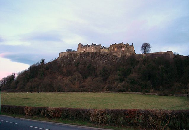 Voordat het ophoudt met zachtjes regenen zijn we gelukkig bij de bus. De verwarming gaat wat hoger om iedereen op temperatuur te krijgen. We rijden nog onder Stirling Castle langs, waar we een mooi uitzicht hebben op het kasteel.