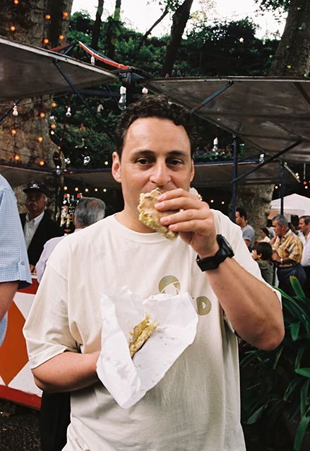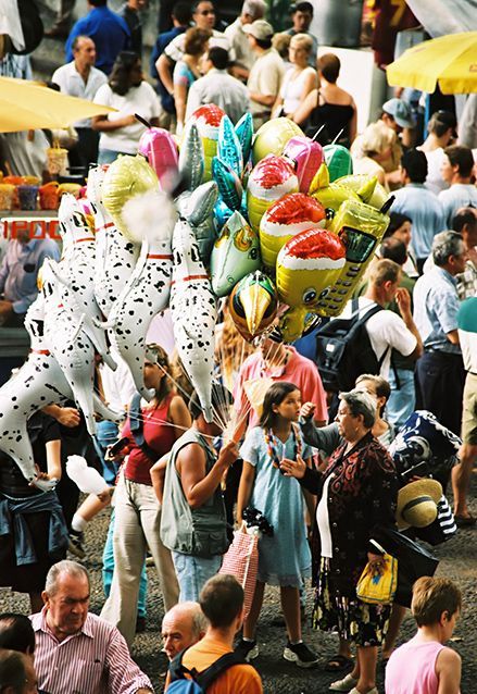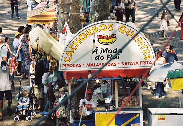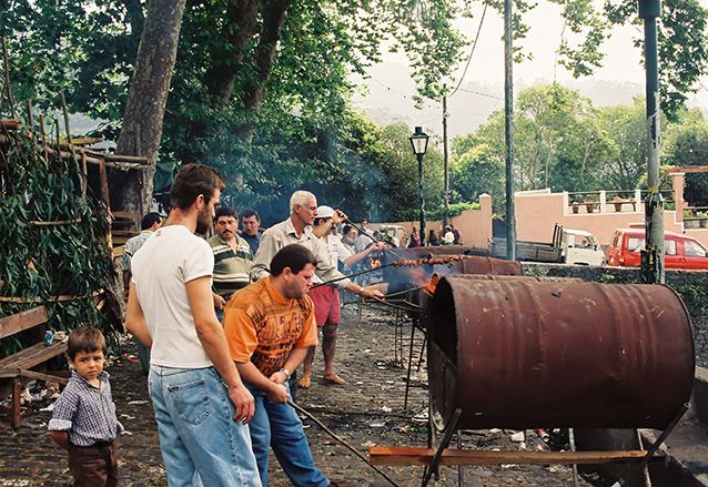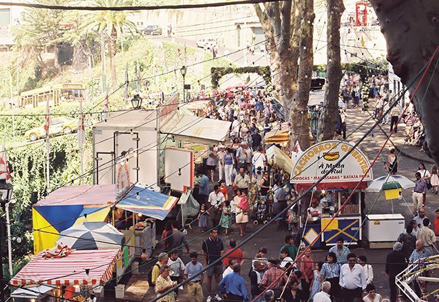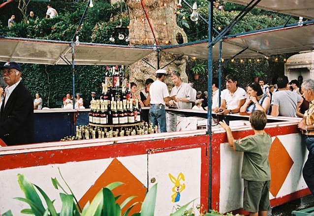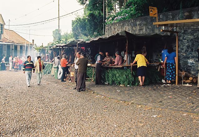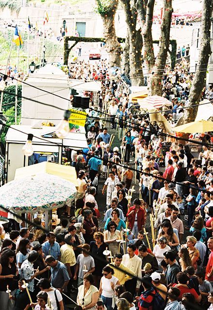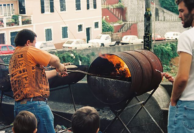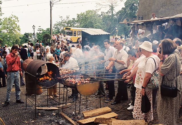 Je zoekt met je wijn, je espetada en bolo de caco een lege stoep op en gaat lekker zitten genieten van de drukte om je heen, het lekkere eten en de dronken mensen.