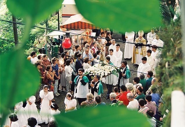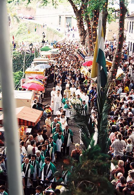 Als je op 15 augustus op Madeira bent, moet je beslist naar Monte gaan. Het is dan nl. ‘Ascensão de Nossa Senhora’, Maria Hemelvaart. Het is een van de belangrijkste feestdagen op Madeira. Het hele eiland stroomt leeg en iedereen gaat, gekleed in zijn of haar beste kleren, naar Monte. Om te kijken of mee te lopen in de processie.