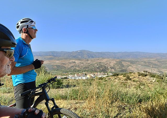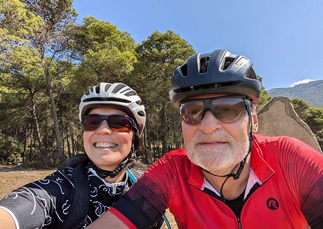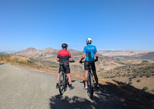 We fietsen in Nederland op een gravelbike, maar vanwege de hoogtemeters in de Axarquia in combinatie met de hoge temperatuur leek het ons verstandig om het op een e-MTB te gaan doen.