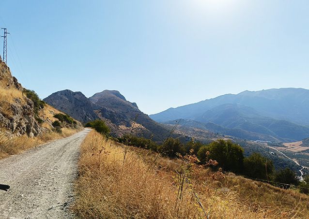 Via een slingerende asfaltweg klommen we omhoog, af en toe omkijkend naar het dorpje Alcaucin dat al snel diep onder ons lag. Toen we eenmaal boven waren, bij een geitenboerderij konden we weer even op adem komen. Vanaf daar besloten we om weer richting Periana te rijden: dit stuk ging heerlijk bergafwaarts.