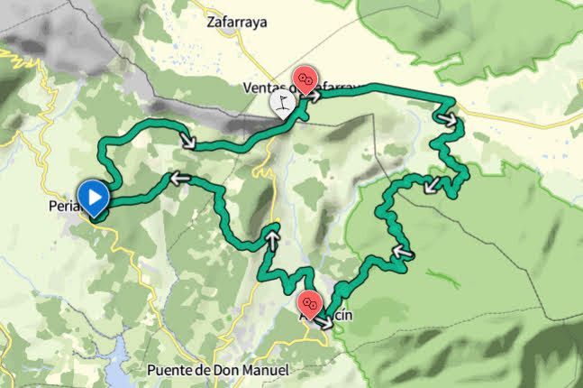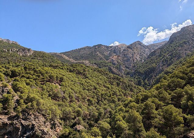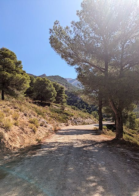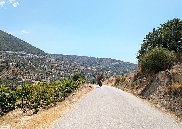 Vanaf Alcaucin ging het eerst nog een heel stuk bergafwaarts: heerlijk met de haren in de wind, maar daarna ging het weer flink bergopwaarts. Jan had ons van tevoren al gewaarschuwd dat we ervoor moesten zorgen nog wat accucapaciteit over te houden voor het laatste stuk.