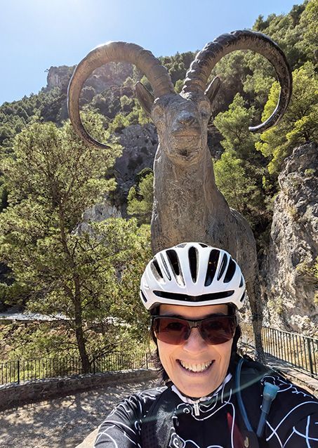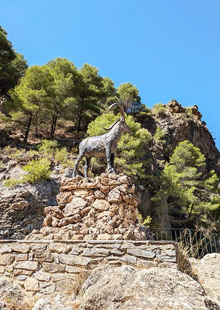 De route ging verder bergafwaarts en natuurlijk moesten we stoppen bij het volgende uitkijkpunt Mirador de Miguel Álvarez. Jan vertelt dat je hier steenbokken kunt spotten. Nou, inderdaad: we zagen er eentje die netjes stil bleef staan 😉