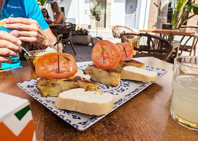 We daalden verder af, op weg naar Alcaucin, waar we even zouden pauzeren. Via smalle steile straatjes kwamen we op het centrale plein, waar we even hebben gezeten en genoten van de lekkere tapas.