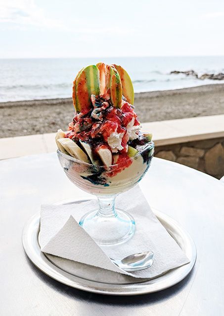 (de grote ijscoupe na afloop op het terras in Algarrabo Costa ook trouwens…..)
