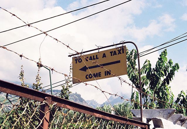 Als we een weggetje over moeten steken zien we het bewijs dat hier wel vaker mensen langskomen. Er hangt namelijk een bordje bij een huis: ‘to call a taxi, come in’. Da's wel voor hele luie wandelaars....