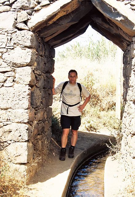 We kwamen er op dat moment achter dat onze wandelgids verouderd was. We moesten op het punt waar de bananenbomen ophielden, een soort trap af. We zagen wel dat het pad langs de levada gewoon verder ging, met reling en al. Nou ja, afdalen dan maar. Dat was geen pretje, want het pad was helemaal overwoekerd door bramenstruiken. Halverwege besloten we om toch maar terug te gaan, om onze benen een beetje heel te laten. Maar eerst wilden we de Romeinse bogen zien, waar de levada overheen zou lopen. Dan waren we tenminste dat hele stuk niet voor niets gelopen. Gelukkig zagen we ze en konden we weer omhoog.