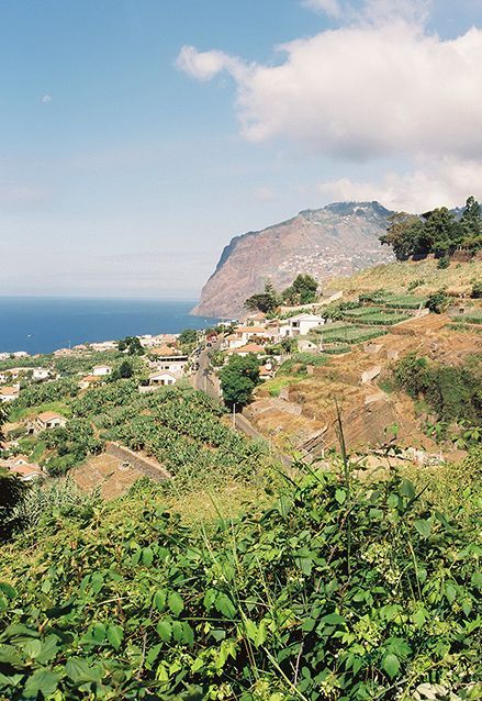 Na een kwartiertje zie je de hoge kaap Cabo Girão voor je liggen. Nu zie je eigenlijk pas goed hoe hoog hij is. Je loopt hier tussen de bananenplantages door.