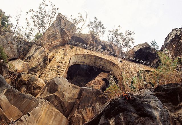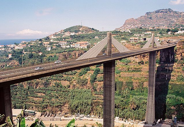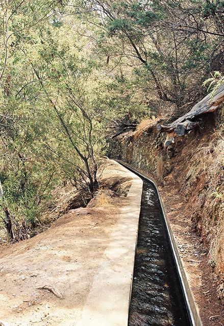 We lopen door het plaatsje Quebradas waarna we weer de levada op moeten. De levada loopt door de Socorridosvallei, waar we een mooi uitzicht op het dal zullen hebben. Nog even de bocht om en dan zien we de brug over de vallei: wat een bouwwerk zeg! Helaas heb je hier het lawaai van de autoweg, dus we lopen snel verder, boven de vallei vol suikerriet en bananenbomen langs.
