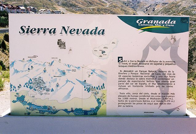 Het is erg moeilijk om je voor te stellen dat hier het grootste deel van het jaar sneeuw ligt. Je ziet de skipiste, de skiliften, maar toch. Het dorp ligt op 2075m hoogte. Vanaf hier heb je een schitterend uitzicht op de op één na hoogste berg, de Veleta (3398 m). Ooit willen we daar nog bovenop staan!Inderdaad: in 2006 hebben we op de top van de Veleta gestaan. Weliswaar hebben we de ‘makkelijke’ toer gedaan en niet 800 meter geklommen, maar slechts 290 meter en dat was al pittig genoeg op die hoogte…….