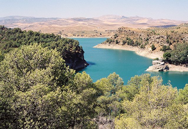 Het Alhambra laten we voor wat het is – we zijn er jaren geleden al geweest en het is prachtig! – en we nemen de zuidelijke ringweg naar de Sierra Nevada Dan verlaten we de snelweg en vervolgen we de weg over langzaam omhoog kronkelende weggetjes. De eerste stop is bij het Embalse de Canales (stuwmeer). De vergezichten zijn hier al mooi en het meer ligt te schitteren in de zon.