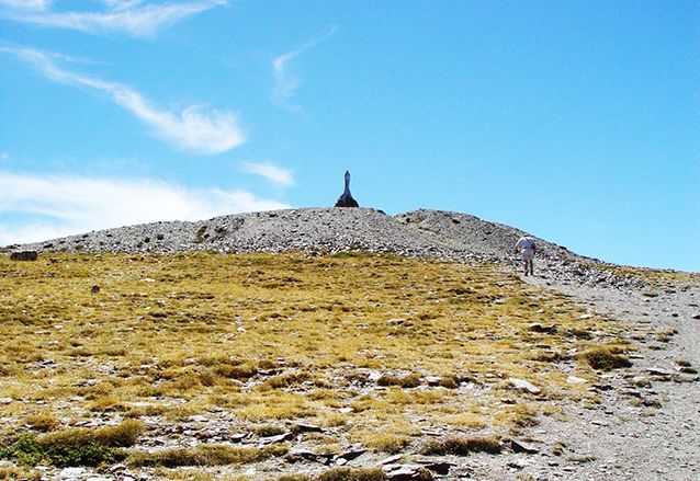 Na een klein klimmetje hebben we een nóg mooier uitzicht op de Veleta. Het is een echte berg: spits toelopend met een echte top.