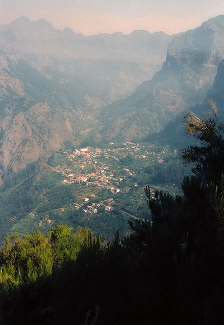 Bij Eira do Serrado aangekomen, dat op 1094 meter ligt, lopen we naar het uitkijkpunt over Curral das Freiras. Je hebt hier een panoramisch uitzicht op Curral en de bergen. De naam Curral das Freiras (nonnendal) ontstond toen in 1566 de nonnen uit het klooster Santa Clara Funchal ontvluchtten via een nauwelijks te vinden wandelpad. Ze hielden zich zo verborgen in de afgelegen vallei voor de Franse zeerovers die Madeira binnenvielen.
