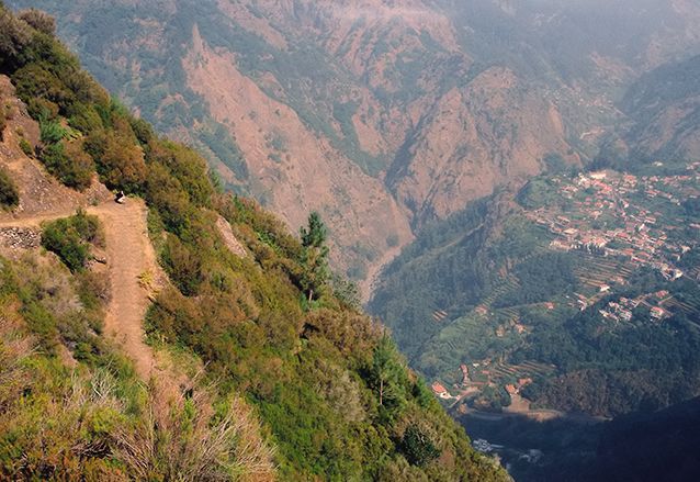 Bij elke bocht komt Curral dichterbij, gelukkig maar. De knieën beginnen behoorlijk te kraken en de scheenbenen beginnen ook al te protesteren van het tegenhouden van je eigen gewicht. Maar het uitzicht op het slaperige dorpje maakt alles goed. De weg gaat erg steil naar beneden, bocht na bocht.
