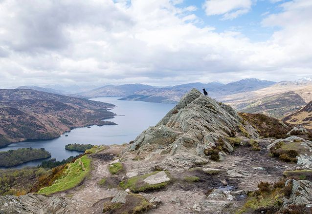 We gaan een klein stukje van de West Highland Way lopen, langs de oevers van het meer. Het is droog, maar er staat een stevige ijskoude wind. De mutsen gaan op, handschoenen aan en we volgen de gids. We moeten flink klimmen en valt niet mee, tegen de wind in. Als we boven zijn, bij het uitkijkpunt over het meer, breekt de zon voorzichtig door. Wat een geweldige omgeving! De een na de ander komt hijgend boven en geniet van het uitzicht.