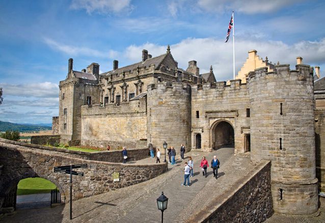 Voordat het ophoudt met zachtjes regenen zijn we gelukkig bij de bus. De verwarming gaat wat hoger om iedereen op temperatuur te krijgen. We rijden nog onder Stirling Castle langs, waar we een mooi uitzicht hebben op het kasteel.