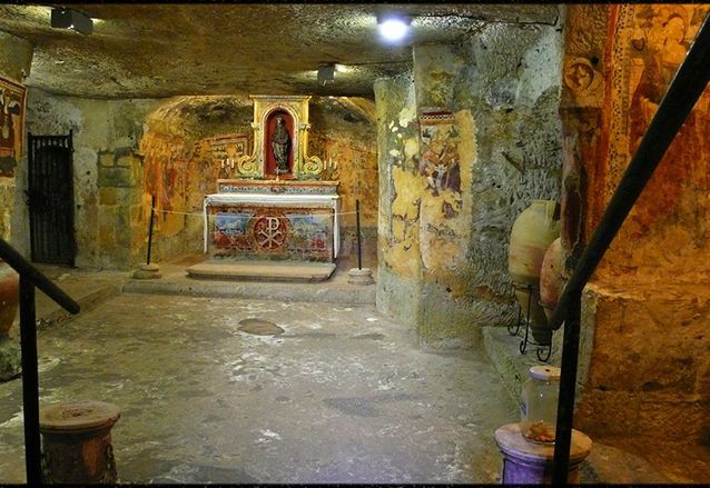 De catacomben zijn genoemd naar de heilige Agatha uit Sicilië, die hier in het jaar 250 woonde. Zij wilde niet trouwen met een hoge ambtenaar uit haar geboorteland. Toen ze terugkeerde naar Sicilië werd ze levend geroosterd en haar beide borsten afgesneden. Ze wordt dan ook vaak afgebeeld met haar borsten in haar hand.