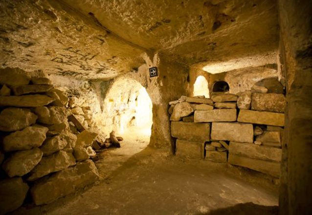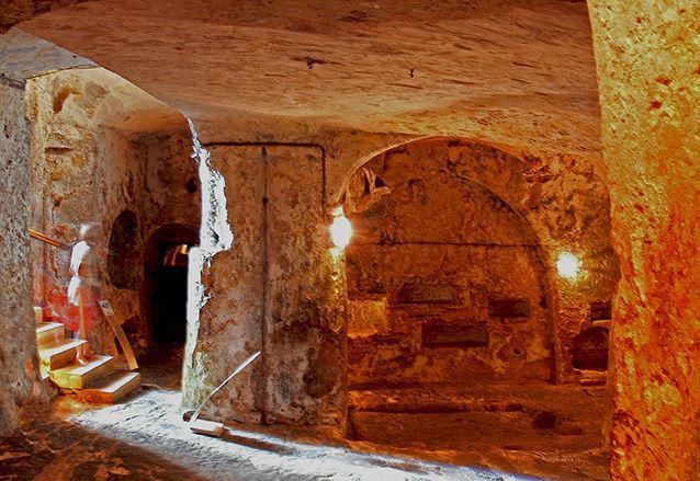 In Rabat lopen we naar St. Agatha's catacomben: een onderaards kerkhof met 500 graven. 300 voor volwassenen, 200 voor baby's.