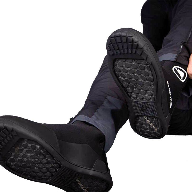 Je kunt hier met sportschoenen met grof profiel op fietsen, maar wij hebben inmiddels speciale flatpedal schoenen van Five Ten: je schoenen lijken stevig vastgeplakt te zitten aan de pedalen: gaan met die banaan!