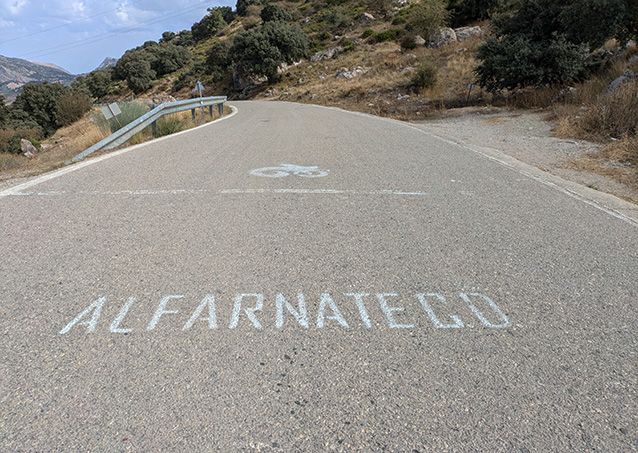 We fietsten door tot Alfarnate, op zoek naar een cafeetje voor een kop koffie. Helaas was alles dicht (afgelopen weekend was hier feest, dus daar waren ze nog van aan het bijkomen) dus zijn we doorgefietst. Ach, we komen vast nog wel iets tegen en we hebben nog water en energierepen.