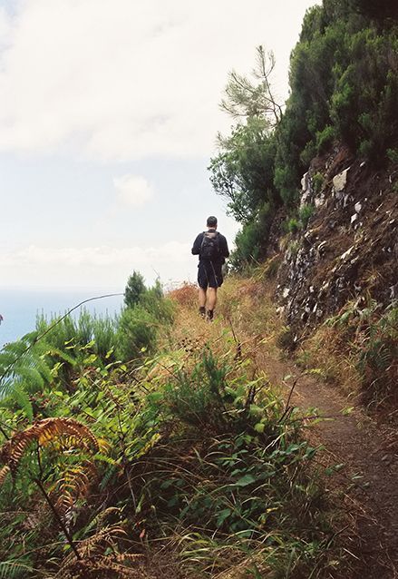 Het is wel prettig dat er naast het pad veel struiken groeien. Het pad is hier erg smal – soms is het niet breder dan 50 cm- er zit geen beschermende reling langs en door die stuiken voelt het niet zo griezelig. Naast het pad houdt Madeira gewoon op en kijk je de diepte in...
