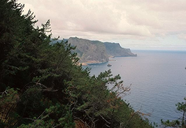 We stoppen in het dorpje Porto da Cruz. Je hebt hier een mooi uitzicht op de ‘Penha de Aguia’, de adelaarsrots. De regenjassen kunnen weer uit, want hier is het droog.