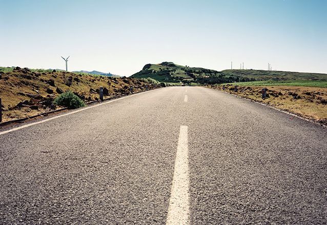 Na dit enige rechte stuk weg op Madeira begint de weg eindelijk weer te kronkelen, op weg naar de badplaats Porto Moniz. Bij een uitkijkpunt kunnen we Porto Moniz en haar natuurlijke zeezwembaden diep onder ons zien liggen.